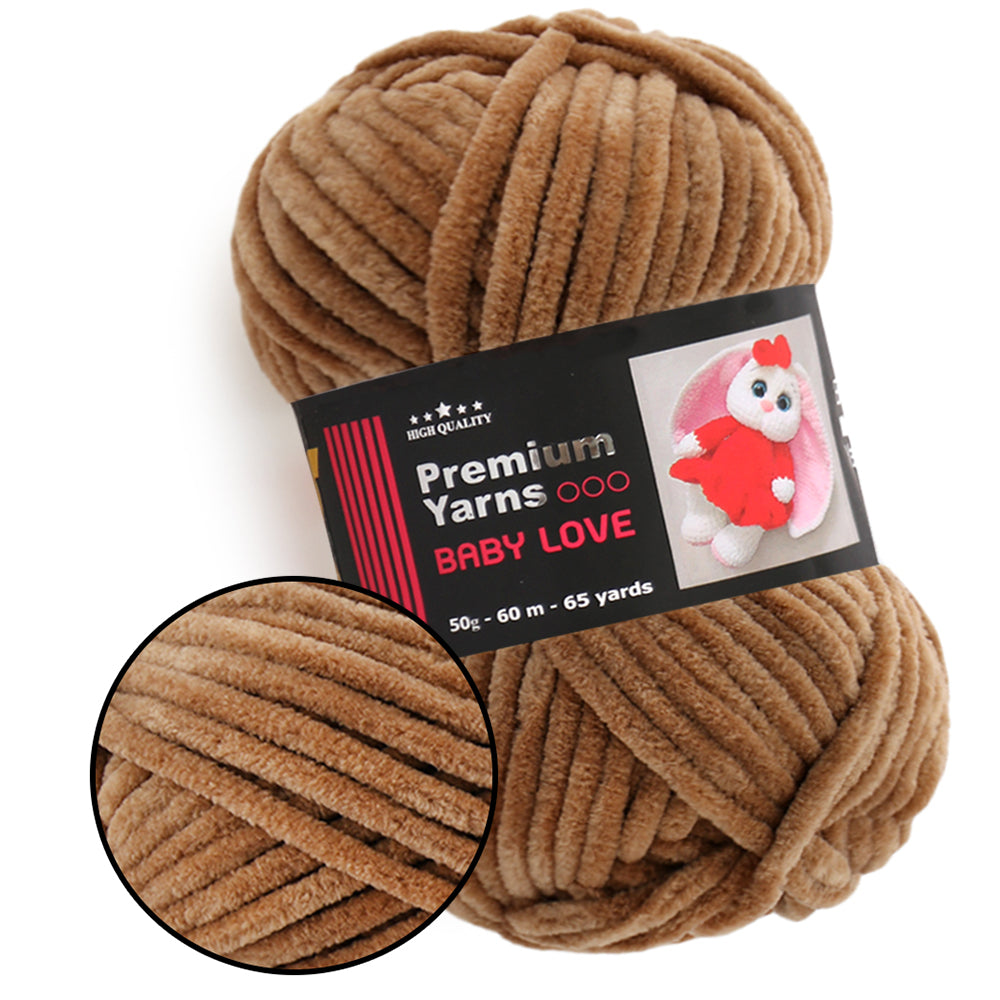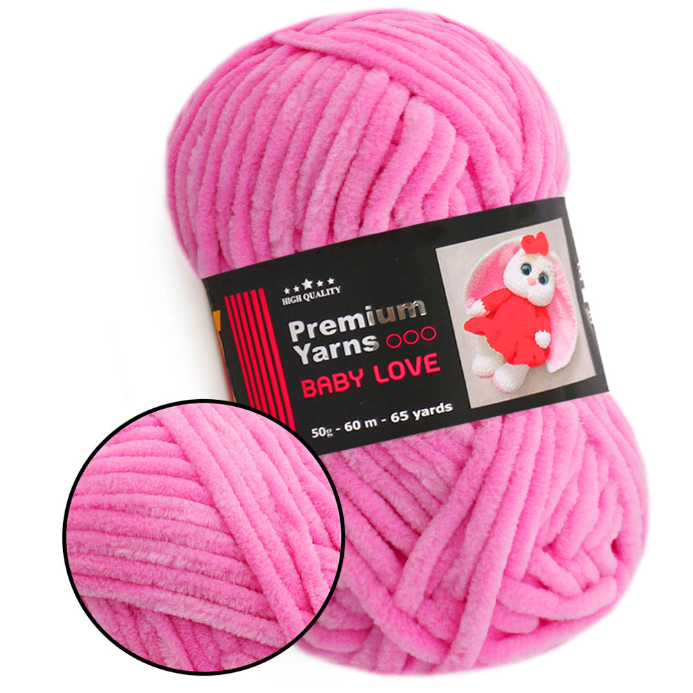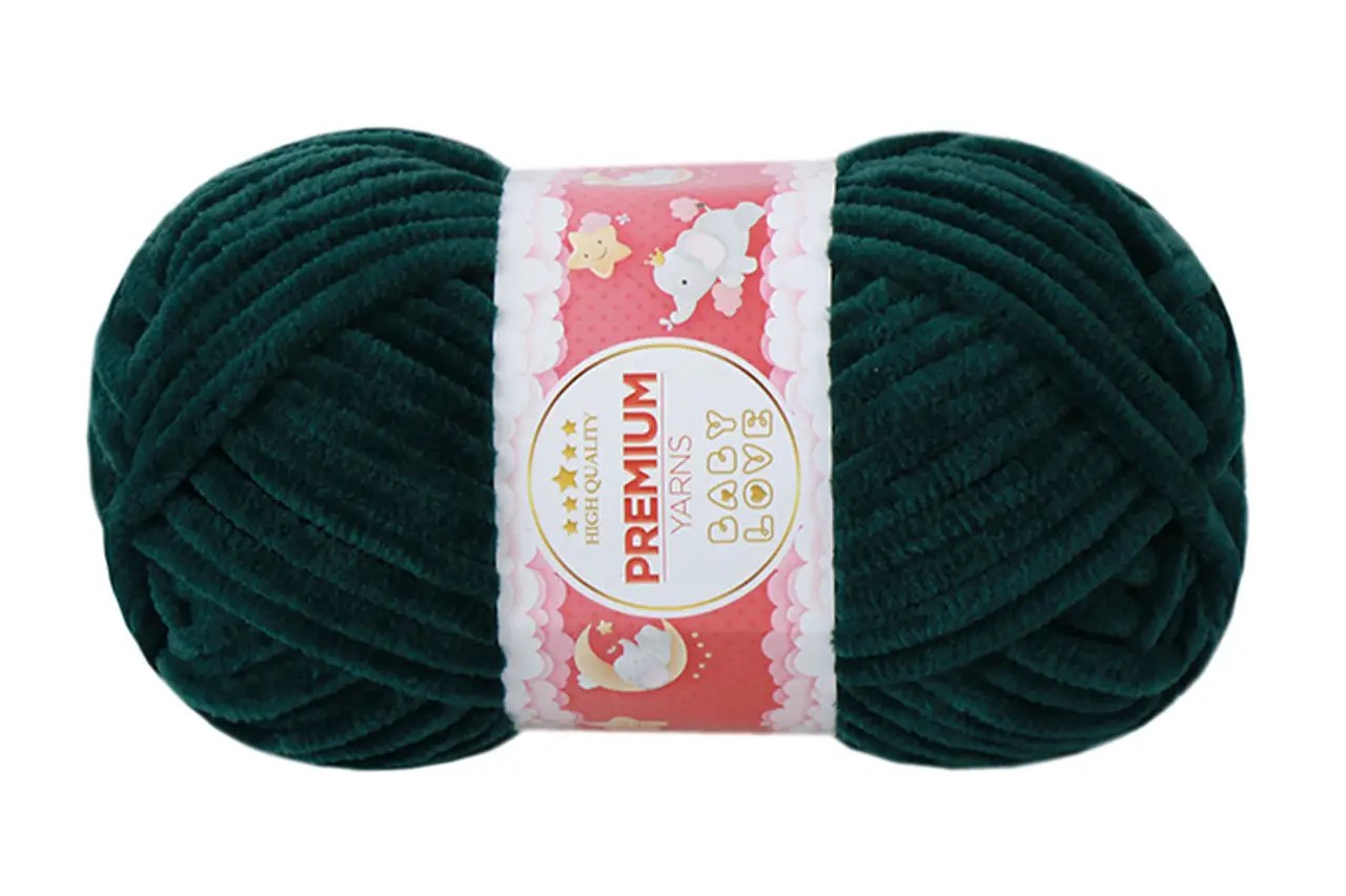This is chunky chenille yarn. This is 100% micro polyester. Premium Yarns Baby Love is soft yarn