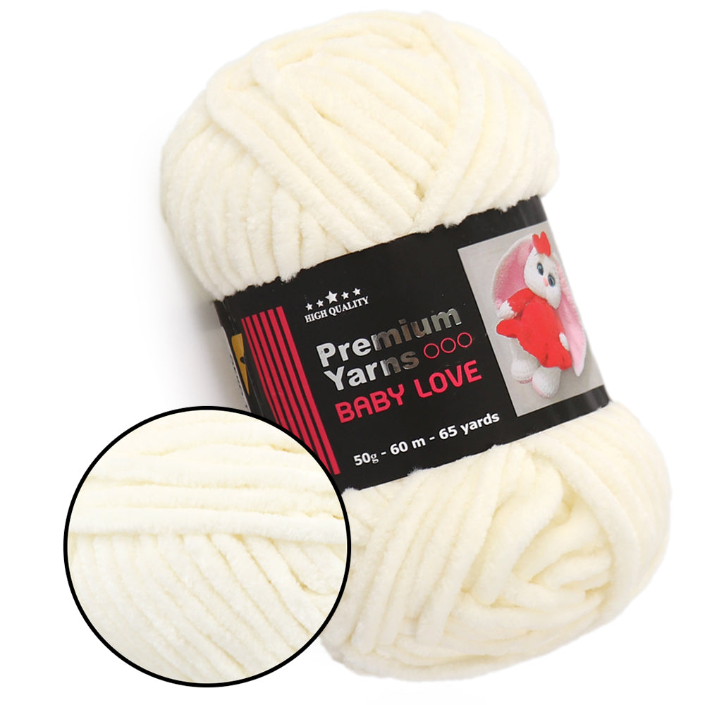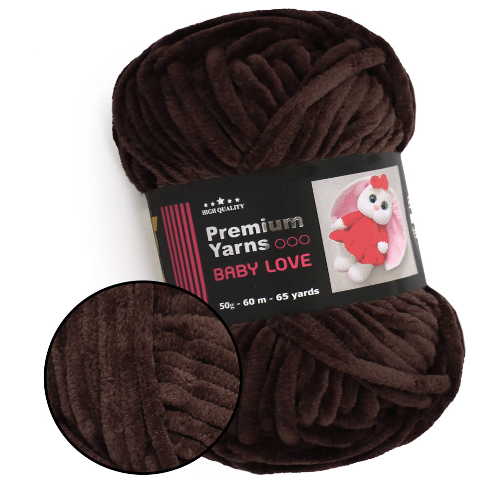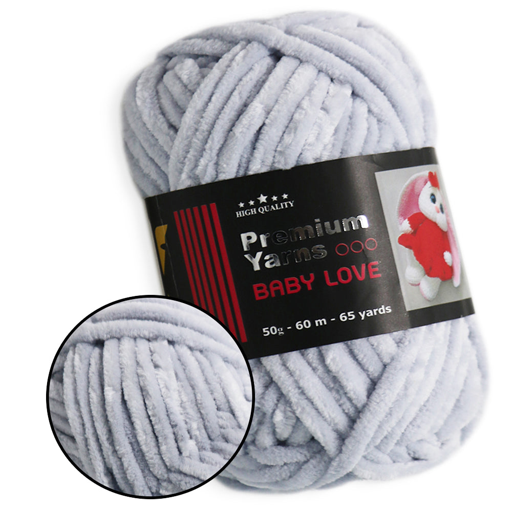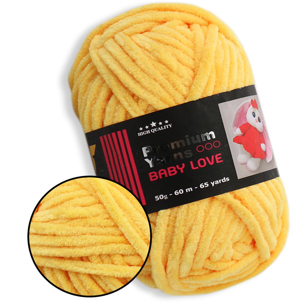 This is chunky chenille yarn. This is 100% micro polyester. Premium Yarns Baby Love is soft yarn