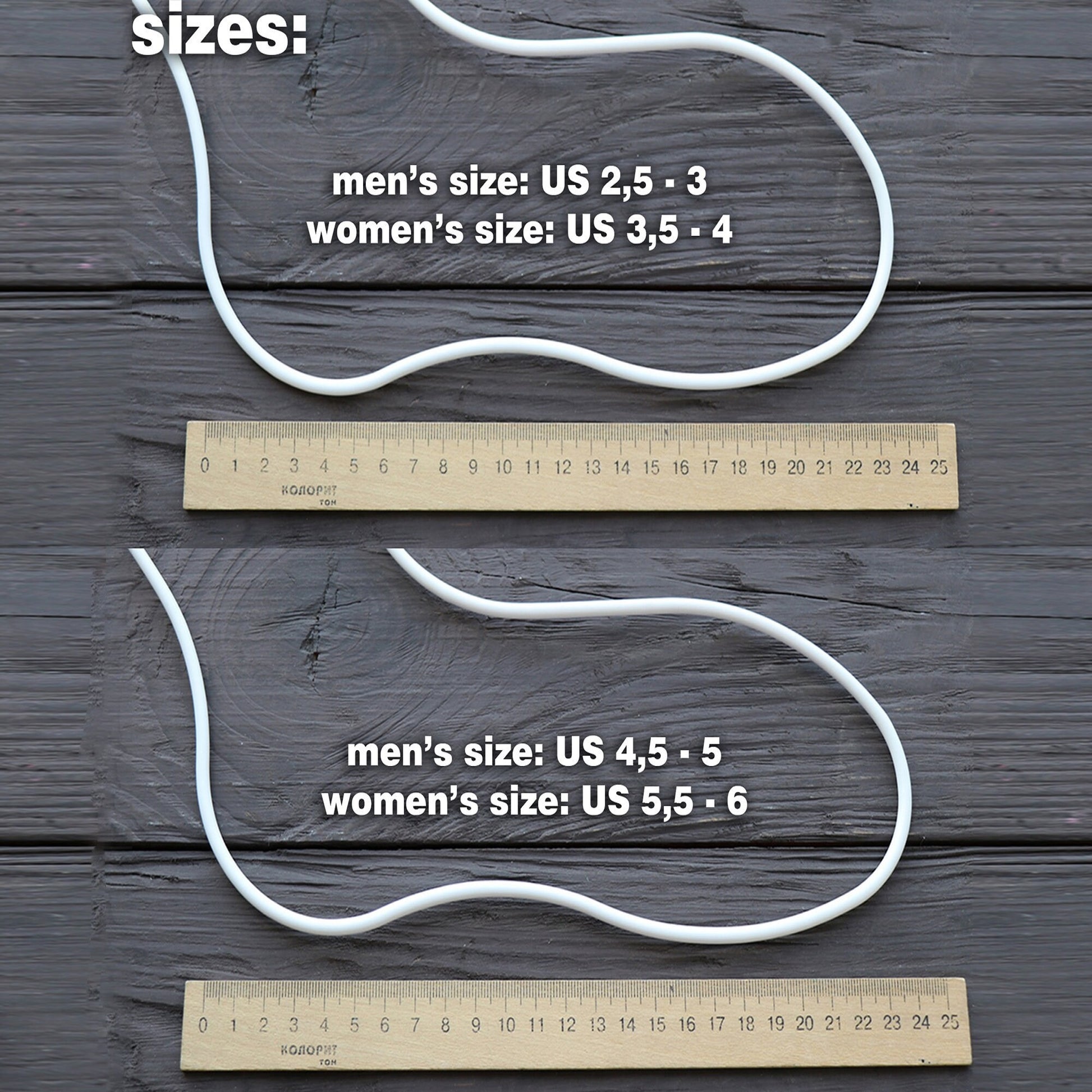US man's sizes: 2.5-3, 4.5-5, 5.5-6, 7-8, 8.5-9.5, 10-11.5, 12-12,5.