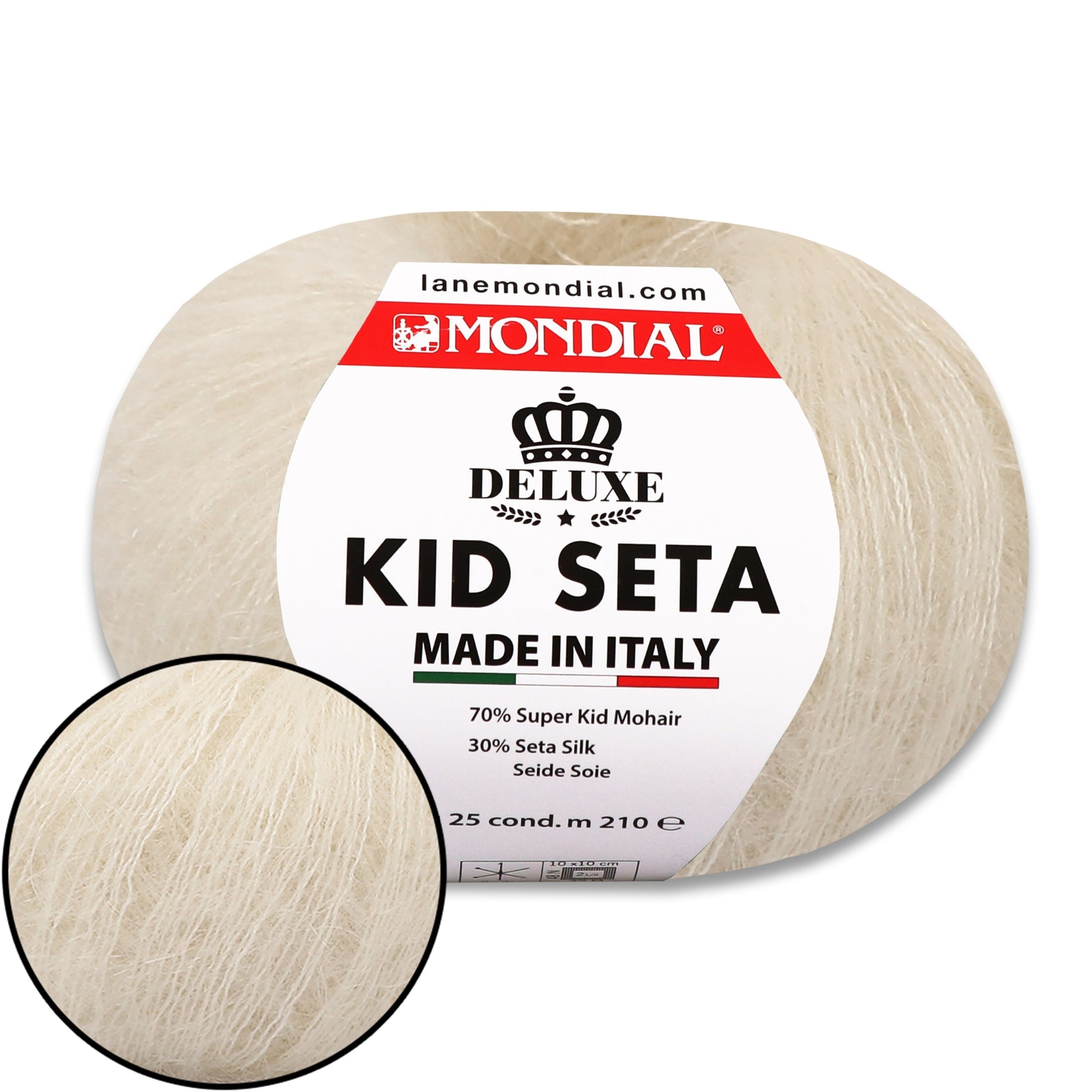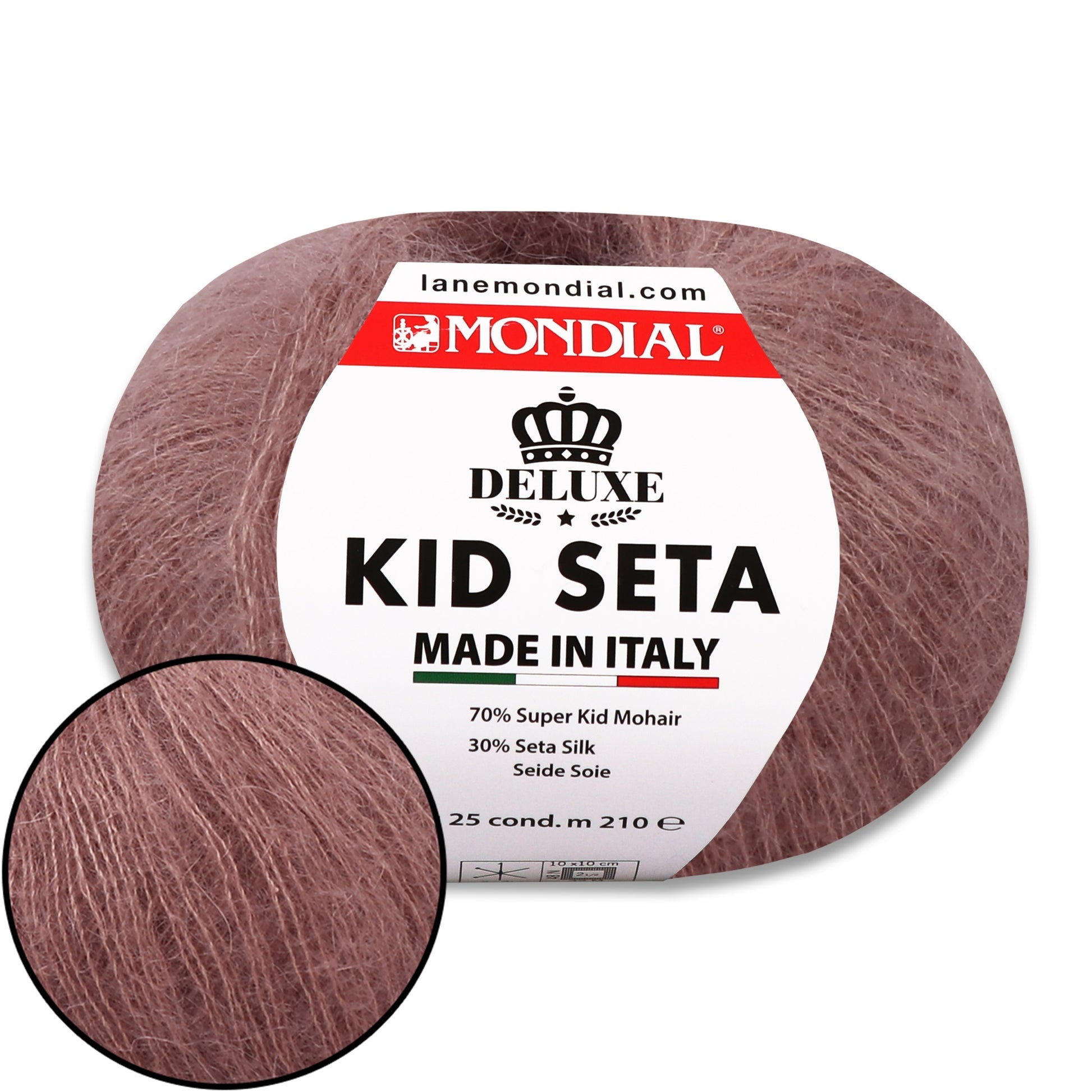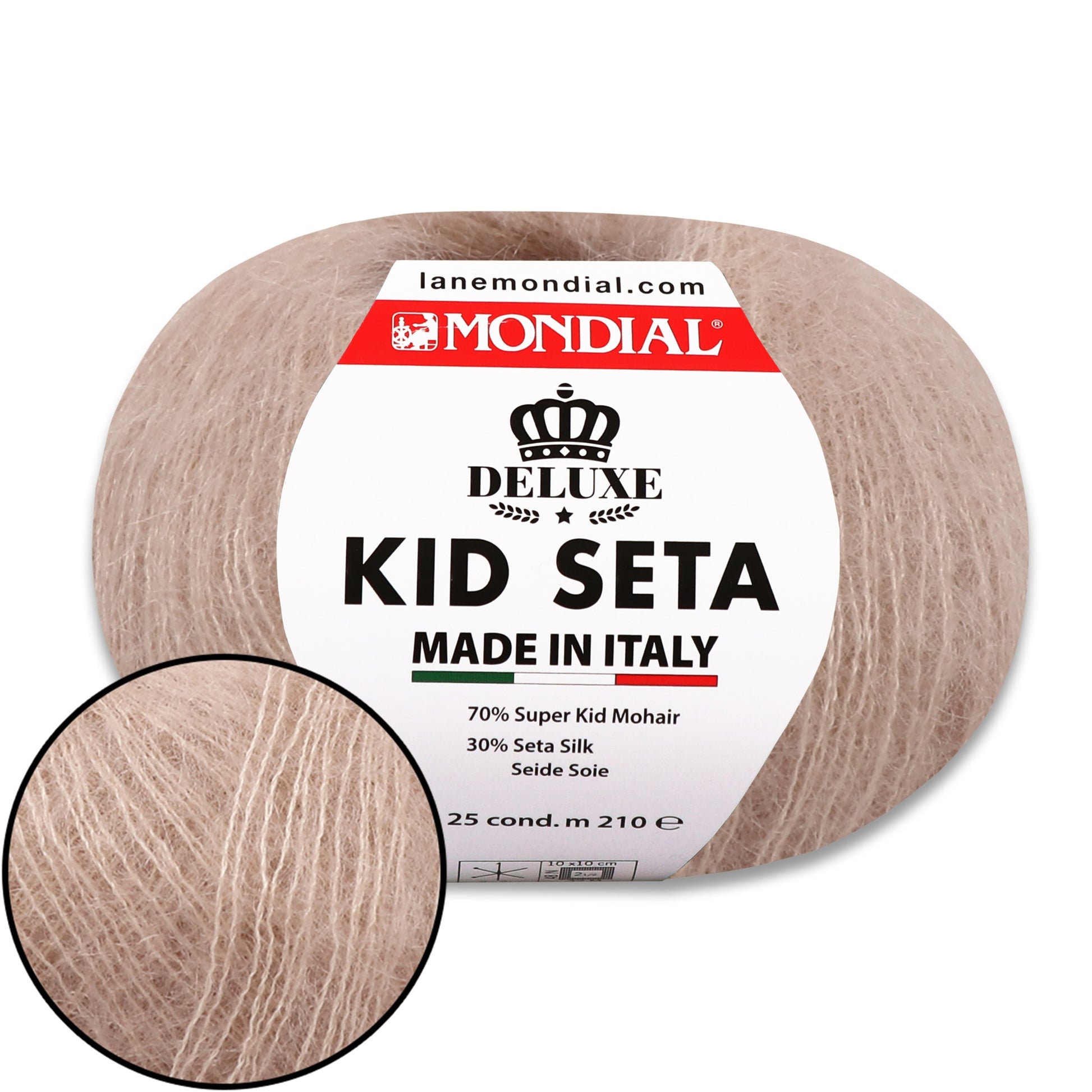 Mondial Kid Seta is a luxurious, weightless, and elegant yarn designed for creating refined and airy projects. The blend of 70% Super Kid Mohair and 30% Silk gives it a soft halo, a beautiful sheen, and an incredibly pleasant feel against the skin. Thanks to its fine structure, it pairs wonderfully with other yarns, allowing you to create stunning multi-layered garments and accessories.