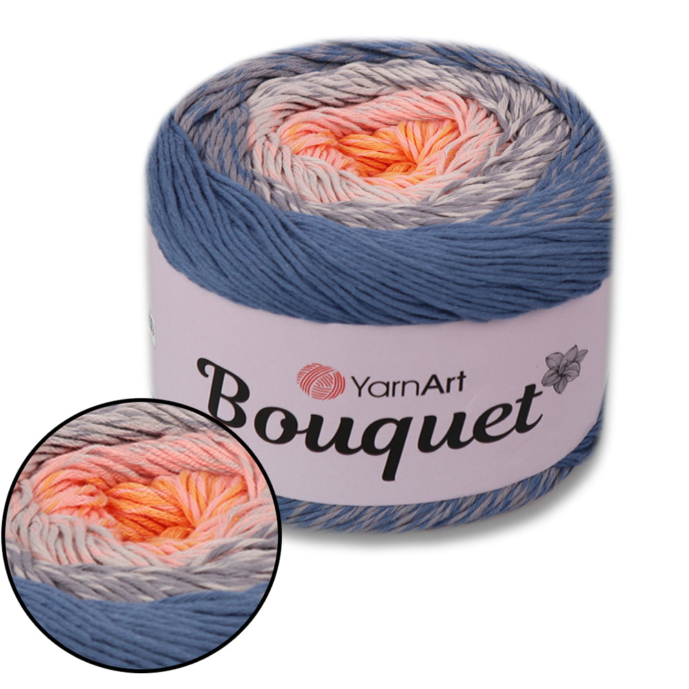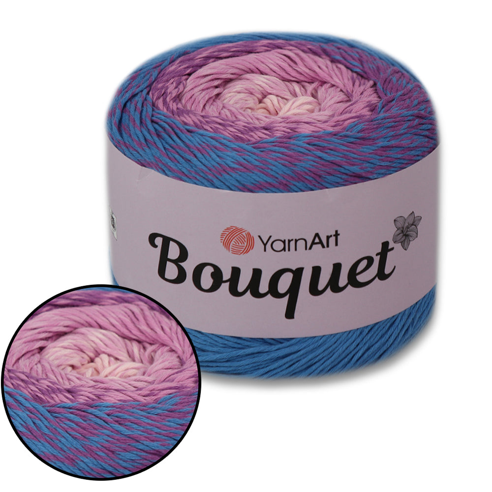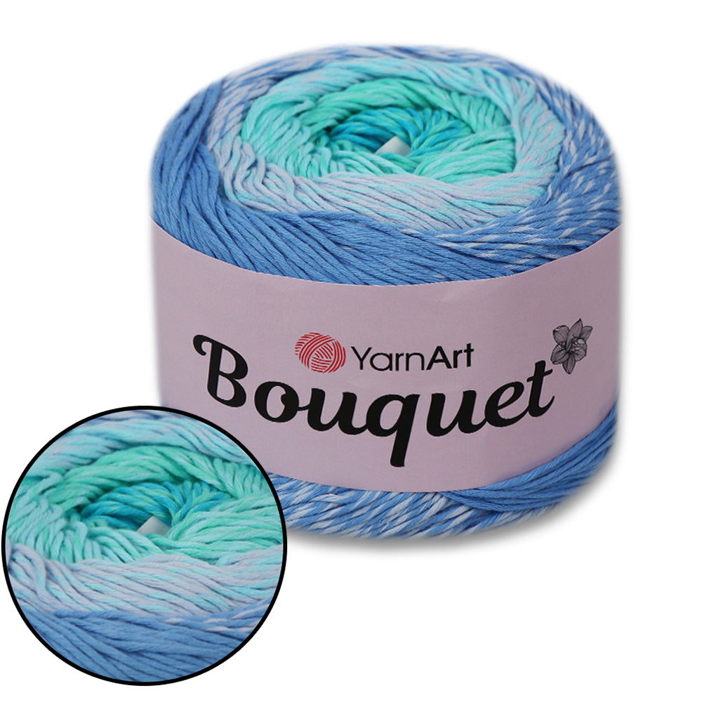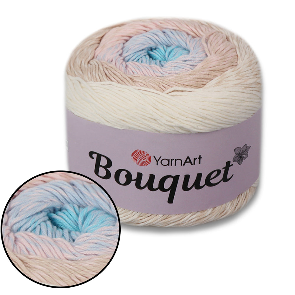Bring your crochet or knitting projects to life with YarnArt Bouquet - a soft, vibrant yarn cake featuring smooth color transitions and a decorative flower accent in the center. Perfect for shawls, scarves, baby blankets, or any lightweight fashion accessory.