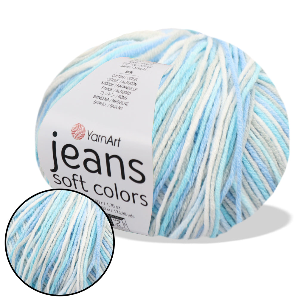 You can choose colors from a palette of 11. YarnArt Jeans Soft Colors is soft yarn